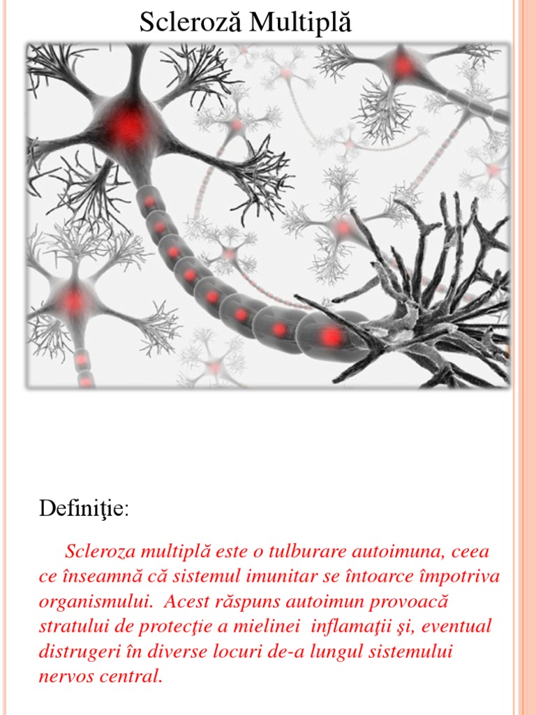 Intre pusee nu se observa progresia bolii. Nu există vindecare pentru scleroza multiplă. Scleroza in placi sau scleroza multipla este o afectiune neurodegenerativa, in cadrul careia 2. Din cauza simptomelor pe care le are, scleroza multipla nu afecteaza pacientul doar din punct de vedere fizic. Multiple sclerosis (ms) symptoms are varied and range from pain, to vision problems, to mobility issues.